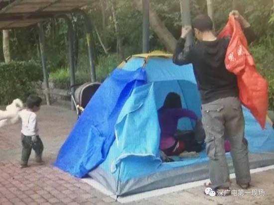 3月1日報道,在深圳少年宮地鐵站的馬路邊,有一家人數(shù)月來都住在帳篷里。原來住在這里的王女士和董先生一家是深圳戶口,老家在江西,原本在梅林還買了房子,一家人生活過得還不錯。2014年丈夫創(chuàng)業(yè)失敗,把房子賣掉還債,去年決定去西安發(fā)展,可在西安遭遇小偷,證件都被偷了。