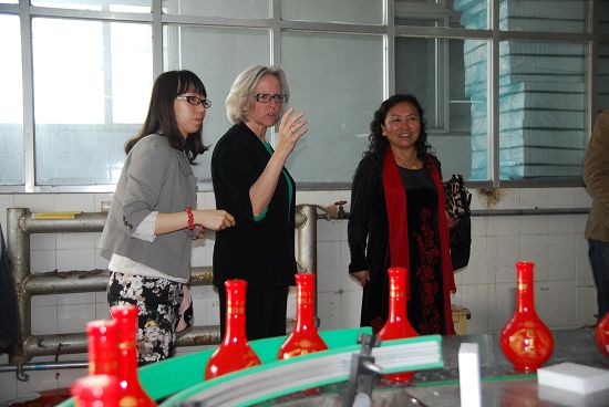 集團董事長李書田對芭芭拉校長一行的到訪表示歡迎,賓主進行了簡短而親切的交談。隨后,芭芭拉校長饒有興趣的參觀了趙王酒的生產(chǎn)、釀造、包裝等車間,集團總工程師蔣孟嶺將釀酒的生產(chǎn)工藝、流程做了深入淺出的講解,芭芭拉女士對酒的原料產(chǎn)地、發(fā)酵工藝、生產(chǎn)設備等做了詳細的詢問,并品嘗了剛剛生產(chǎn)的原漿酒,當聽到趙王酒的歷史淵源可以追溯到中國歷史上2000多年前戰(zhàn)國時期的趙國,趙酒就已經(jīng)揚名于諸侯列國時,連連伸出大拇指,表示不可思議,向大家表示由衷的敬意。