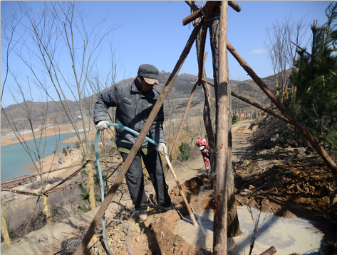 在紫山紫云湖2號湖區(qū),工人們正在用吊車、鉤機卸載從全國各地拉來的樹木,包括香花槐、國槐、垂絲海棠、櫸樹、青桐等多個樹種。在紫山梅花谷,60多名工人正在馬不蹄停地栽種剛剛從江蘇拉過來的紅梅,有的培土澆水,有的修剪枝葉,還有的給樹干噴水。“紅梅特別的嬌貴,第一遍必須深根澆水,培土完畢后還要進行表層澆水和樹干噴水,這樣才能提高成活率!”紫山植被綠化負責人陳小林說,紫山屬于強風化巖土質(zhì),植樹前需要鉤機將巖石拋開,人工換土后再植樹,只要我們科學栽培,到夏秋季時一定能看到景區(qū)綠化品味與檔次。